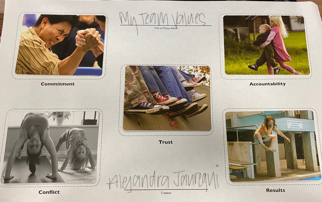 Trust: To depict trust, I chose the image of five kids sitting on the edge of a skateboard rink with their legs dangling over the edge. I chose this picture because not one of the kids does not have their legs hanging over the edge, they are all in this together. It just made me feel like they had each one another’s backs and that is ultimately how I felt with my team in regard to trust.
