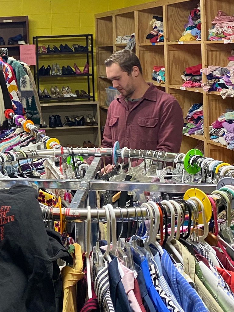 Organizing clothing is not on the top of my list of things to do in my free time. I struggle to find the motivation to organize my own closet. But once I got in a steady rhythm I actually somewhat enjoyed it. Once we left, I was reflecting on my time there and observing the community on my drive home. I wasn’t thinking too much about how I felt on my drive but I did manage to get a general understanding of the community around me. Once I got home I spoke with my mother about what I did at the Milwaukee Women’s Center. She seemed very interested and asked lots of questions. She was very excited and said that what I did was “really cool”. Initially I didn’t think of organizing clothes as a huge help to the community but after that conversation with my mother I started to analyze what we did. The Milwaukee Women’s Center supplies clothing for those in need. When we arrived the clothes were just stuffed in garbage bags and the room was full of clutter. Upon our departure the room felt like a completely different place. The clothes were organized by size and style. Blankets were folded and organized by use. shoes were put with shoes alike. And the garbage was removed from the walkways, making navigating the shelves and racks much more smooth. Not only did we make the experience of finding and retrieving clothes easier. We made available the clothes and blankets, which were previously stuffed in a pile of garbage bags. Once I looked at how the little things we each did that evening would help benefit the lives of others in the future, I felt good. I felt happy. A happiness that went deeper than simply holding the door for someone. Even though the tasks we performed nearly as simple as doing so. I think the reason for the deeper happiness has to do with how abandoned the room looked when we arrived. Everything was rummaged through and it seemed the room inventory hadn’t seen any attention in a long time. It seemed, as it was something that no one wanted to address. And as time progressed, so did the deterioration of the room. Doing the dirty work that no one else wants to do is deeply satisfying once it’s all said and done. And because of this, we not only helped those who will look for clothes there, but we also made the lives of those whose job it would be to organize the room.