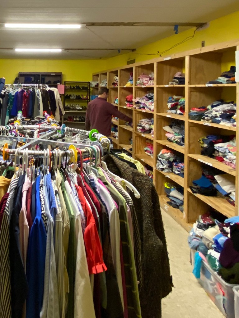 We left the Women’s Center around dinnertime, which turned out to be a very good thing. We were able to see the environment a little better than we arrived. We arrived to a seemingly lifeless building. We didn’t see many people or much activity on the way to the clothing inventory. But when we left we were met with the smell of dinnertime. Children were laughing and running the hallways. The staff was playing various games with different groups of children. There were arts and crafts. And several women were having conversations at the dinner tables. I’m glad we left when we did because had I not seen anyone on my way in or out I may not have felt as good about our volunteering. Seeing the people directly affected by our work really warms your heart. Many of the children there most likely get clothed from that room. The sheets on their bed that I found in a garbage bag may have come from that room. The women in need may find a dress on the rack I organized. And making the task of finding these items easier may bring them joy from the ease rather than stress from the challenge. Now that there’s no longer garbage along the aisles they may no longer assume the clothes are tattered and dirty. Maybe they’ll feel prettier in that dress they picked or feel better about the clothes they pick out for their children. Regardless how many of these are true, the possibility of even one being true for a few people brings joy to my heart.